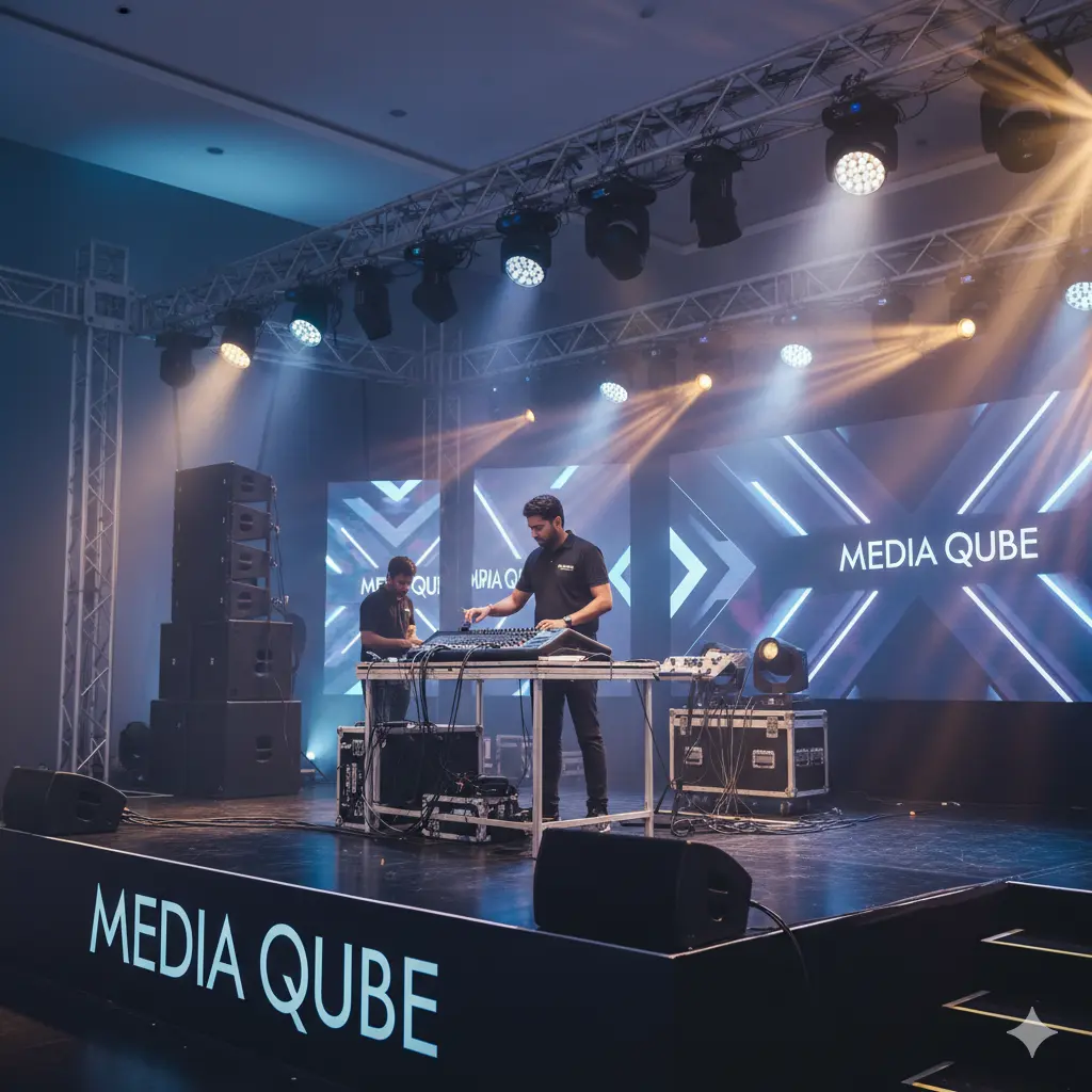 Media Qube is a trusted name in audio-visual equipment rentals, offering complete solutions for every type of event. From corporate meetings and award shows to weddings, concerts, and cultural programs, we deliver professional-grade sound, lighting, and LED wall setups that elevate every experience. Our expert technical team ensures smooth installation, operation, and support throughout your event. We use premium brands and the latest technology to guarantee quality, reliability, and performance. At Media Qube, we don’t just set the stage — we make every moment shine.