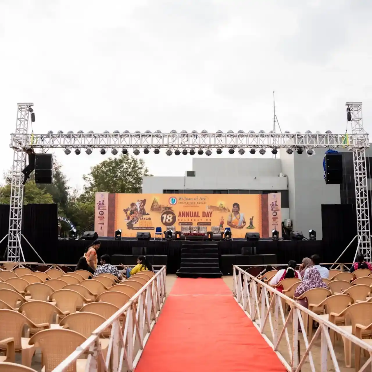 Ensure stable stage setups with durable truss and rigging frameworks designed to support lights, LED screens, and speakers.